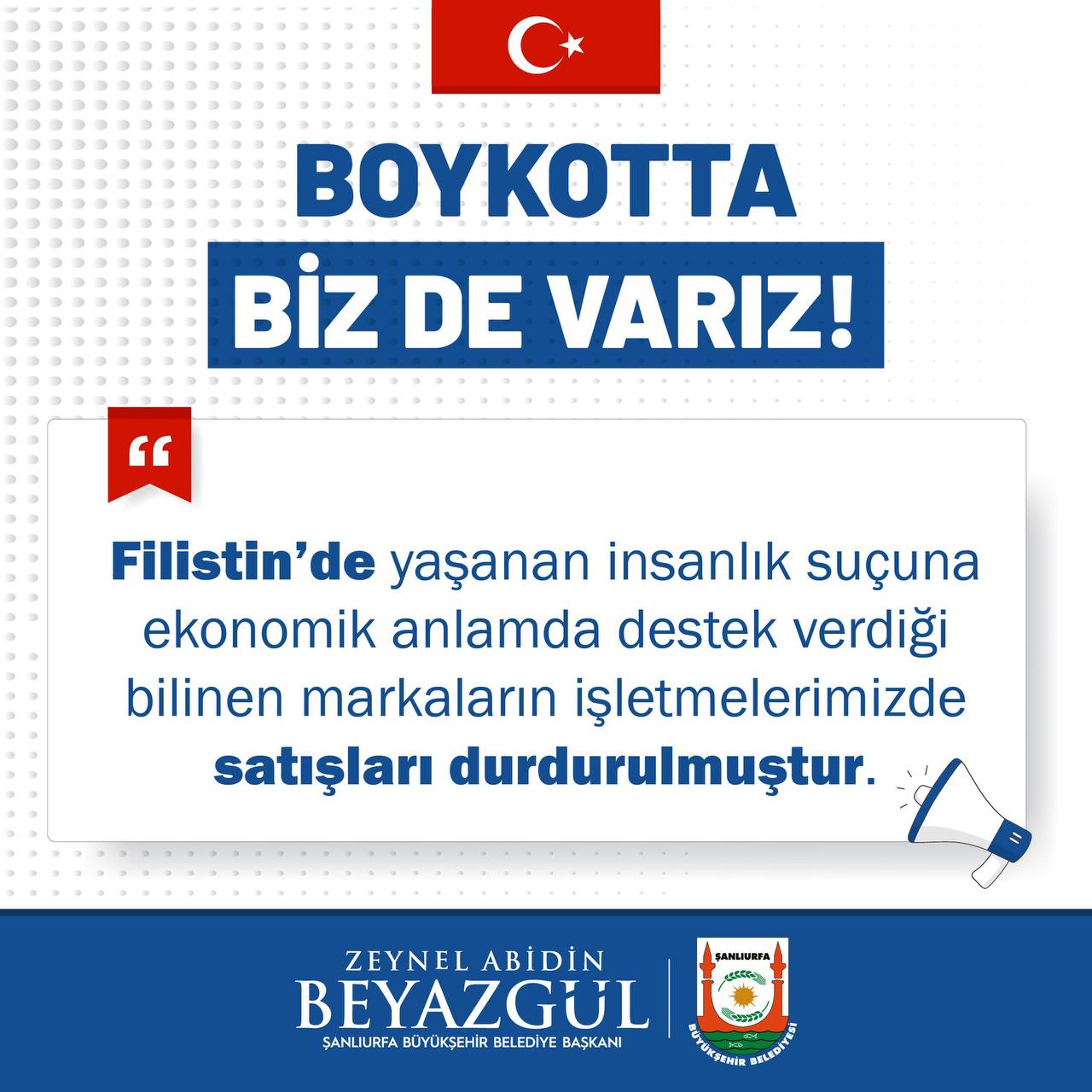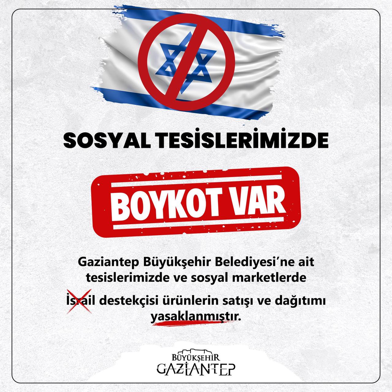 İsrail tüm canavarlığıyla saldırılarına devam ederken, Türkiye’de ve dünyanın pek çok yerinde İsrail’e karşı ona destek veren marka ve ürünler boykot ediliyor. Vatandaşların yanı sıra bazı duyarlı belediyeler de boykota katıldı.
