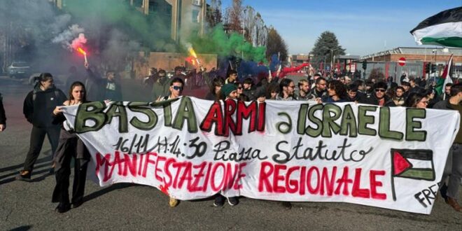 İtalya’da öğrenciler, İsrail’in Gazze’de yürüttüğü soykırım savaşında Leonardo adlı silah şirketinin suç ortaklığını protesto etmek için şirketin Torino’daki merkezinde toplandı. Bu anlamlı eylem, İtalya’nın Gazze soykırımındaki karanlık rolünü gözler önüne serdi.