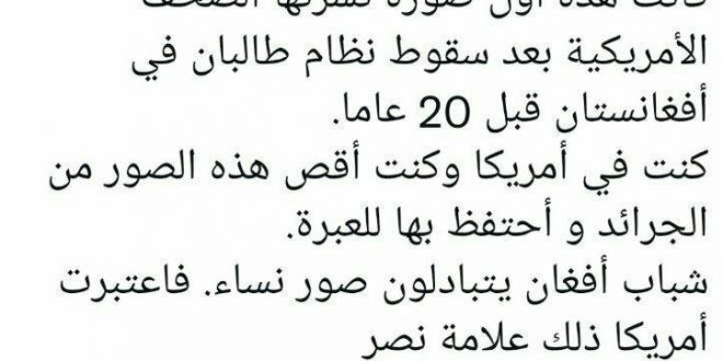 “Bu, 20 yıl önce Afganistan’da Taliban İslam Emirliği’nin düşmesiyle Amerikan gazeteleri tarafından yayınlanan ilk fotoğraftı. Ben o zaman Amerika’daydım ve bu resimleri kesip, ders yapmak için sakladım.