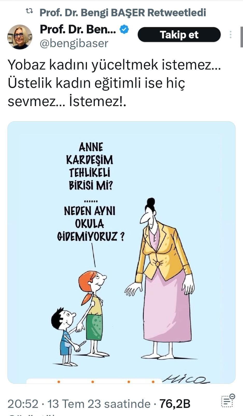 CHP’li Başer, sosyal medya hesabından tesettürlü kadınlara ve olumsuz bir algı oluşturulan bir Müslümana top fırlatılan bir karikatürü paylaştı. Çirkin paylaşımına bir de not düşen Başer, “Kadın isterse, yapar ve bu ülkenin Cumhuriyet kadını bu ülkenin başını her daim dik tutar! Yobaza inat!..” ifadesini kullandı.