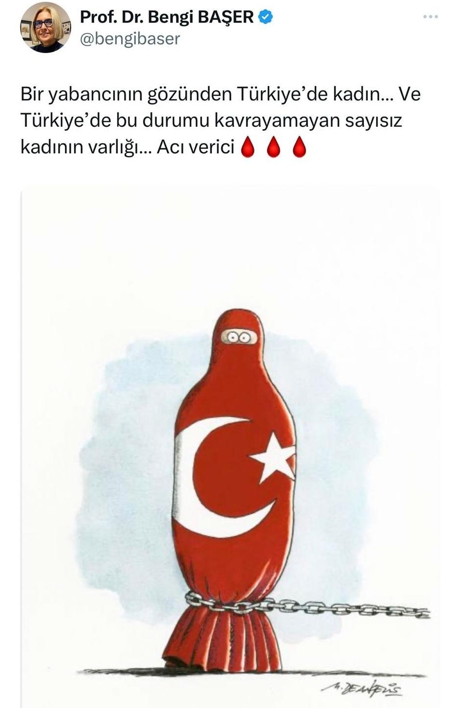 İslami değerleri ve Müslümanları her fırsatta hedef alan Bengi Başer, son yaptığı çirkin paylaşımın ardından İslam Davası Cemiyeti mensubu kadın avukatlar tarafından suç duyurusunda bulunuldu.