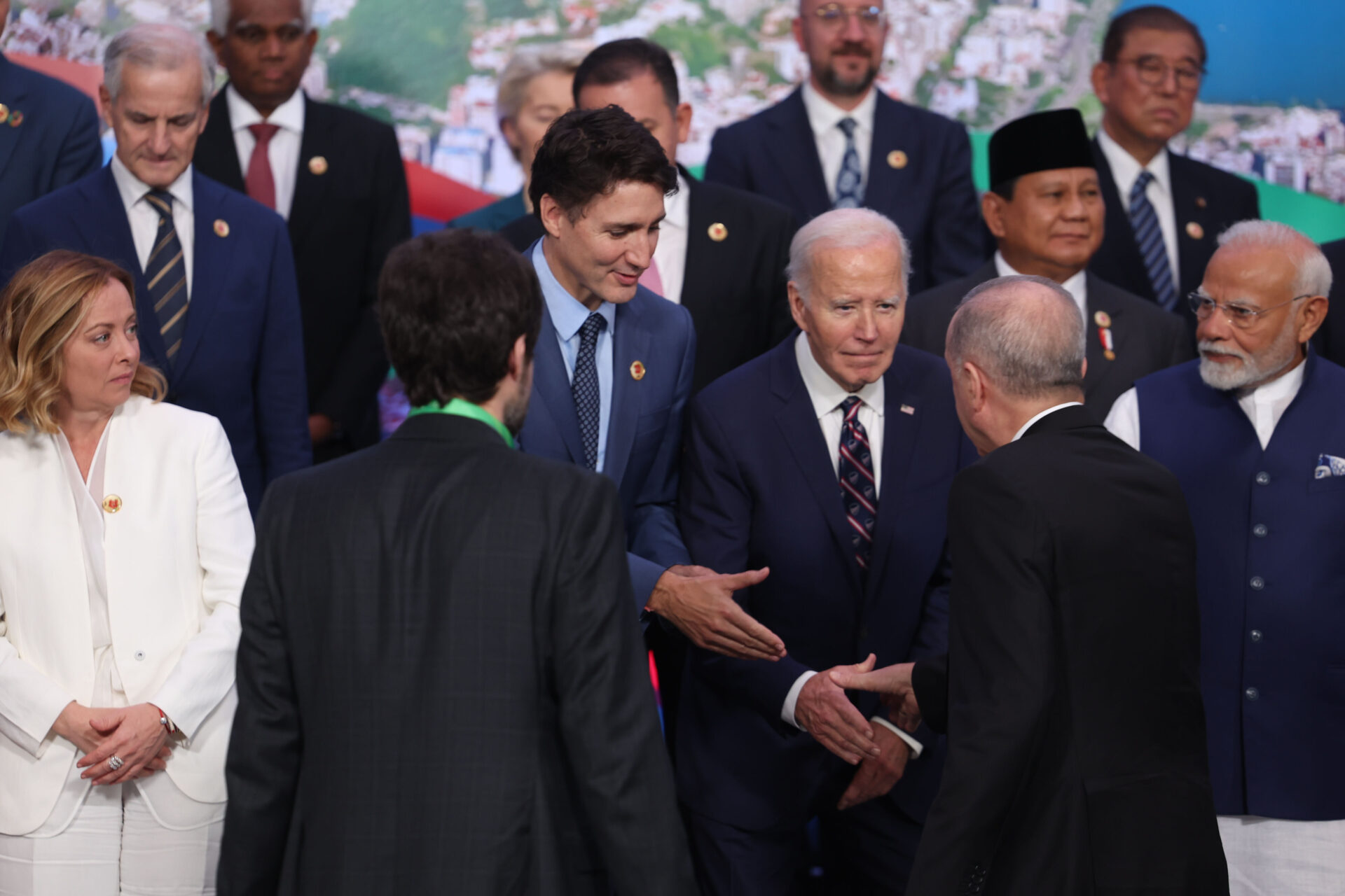 Cumhurbaşkanı Recep Tayyip Erdoğan, Brezilya’da gerçekleştirilen G20 Liderler Zirvesi’nde, geçmişte İsrail’e silah ve destek veren isimlerle bir araya gelerek dikkat çekici bir aile fotoğrafı çektirdi. Bu karede, İsrail savaş gemisinin Süveyş Kanalı’ndan geçişini onaylayan Mısır Başkanı Sisi ile İsrail’e silah ambargosu uygulayan İtalya Başbakanı Meloni de yer aldı.