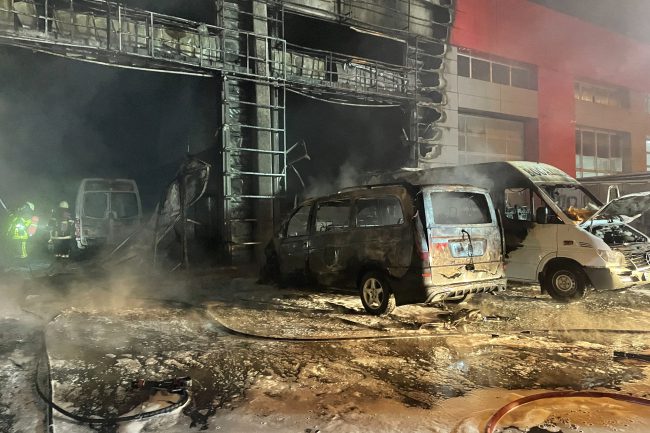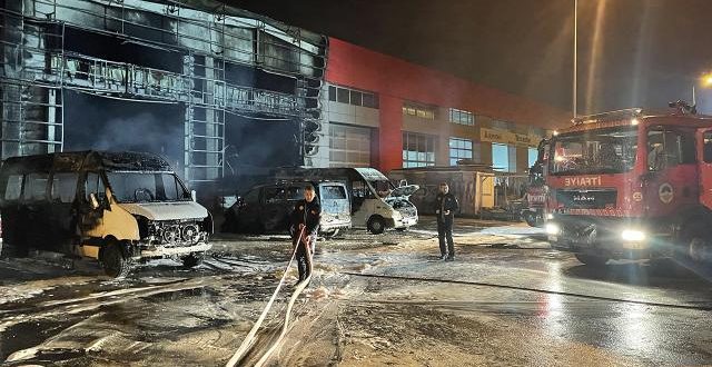 İş yerinde tamir için bekleyen 2’si ambulans 10 araç kullanılamaz hale geldi.