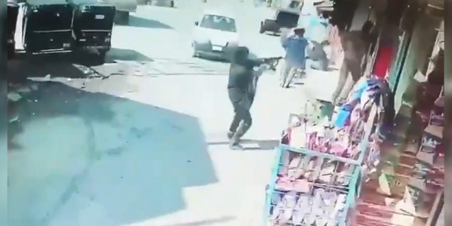 Saldırı anına ait görüntüler, bölgedeki bir iş yerinin güvenlik kamerası tarafından kaydedildi: