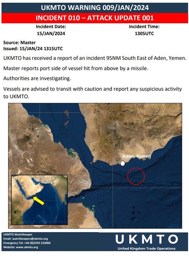 Yemen’in Aden sahilinin 95 mil açığında bir gemiye, Yemen Silahlı Kuvvetleri tarafından doğrudan füze isabet etti.