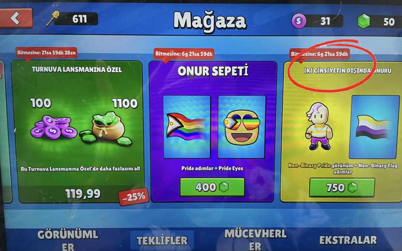 Scopely adlı yazılımcı firmanın geliştirdiği oyunda bu ay ‘LGBT’ propagandası içeren paketler satışa çıktı. Bu paketler arasında ‘Onur Ayı’na (pride month) özel ‘Trans onuru’, ‘Aseksüel onuru’, ‘İki cinsiyetin dışında onuru’ ile ‘Onur sepeti’ seçenekleri yer alıyor.