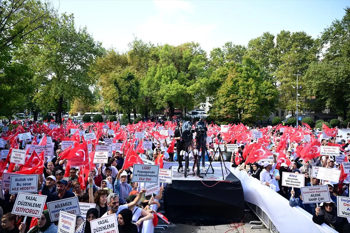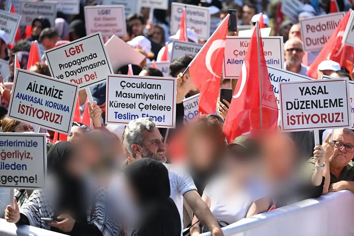 400 sivil toplum kuruluşunun bir araya gelmesiyle oluşan kalabalık, “Dursun bu Hayasızca Akın”, “Aileyi korumak milli güvenlik meselesidir”, “Sosyokültürel teröre dur de” , “Ailemize anayasal koruma istiyoruz” , “Aileye savaş açanlara geçit verme”, “Aile hedefte başını çevirme”, “Çocuklar için sesini yükselt” yazılı dövizlerle LGBT dayatmasına karşı tavrını ortaya koydu.