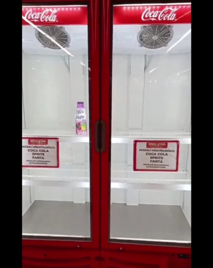 Çığ gibi büyüyen bireysel boykota kurumsal firmalar da katılıyor. Bir zincir marketin coca cola standını boşaltıp İsrail ordusunun destekçisi olan markaların satılmayacağını yazması sosyal medyada gündem oldu.
