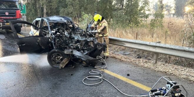İsrail basınında yer alan görüntülerde, alev topuna dönen aracın kömürleştiği görülüyor.