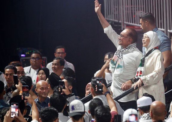Malezya Başbakanı Enver, Kuala Lumpur’da Filistin’de yaşanan soykırım için düzenlenen gösteriye bizzat katıldı.