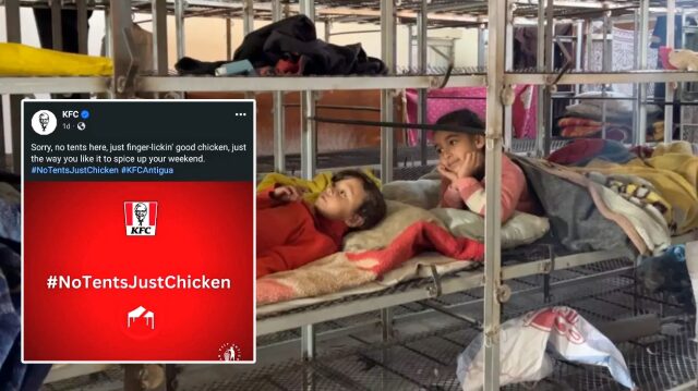 KFC geçtimiz günlerde büyük bir skandala imza atarak Gazze’deki dramla dalga geçmişti. Yerinden edilen siviller, çadırlarda ve tavuk kümeslerinde yaşamaya çalışırken KFC reklamında #NoTentsJustChicken (Çadır yok sadece tavuk) etiketini kullanmıştı.