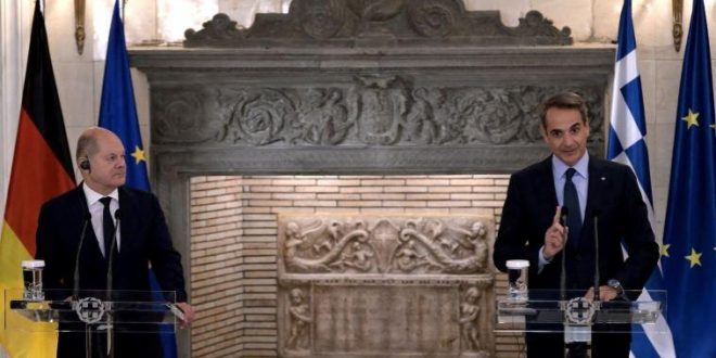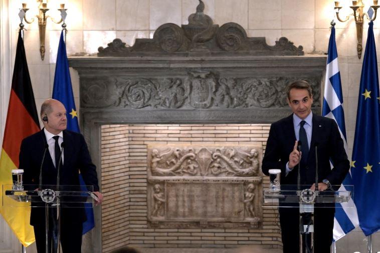 Miçotakis ile görüşmelerinin ardından düzenlediği ortak basın toplantısında Scholz, “NATO ortaklarının birbirlerinin egemenliğini sorgulaması olmamalı. Bütün meseleler diyalog yoluyla ve uluslararası hukuk temelinde çözülmelidir. Ve bu konuda çok hemfikiriz.” ifadelerini kullandı.
