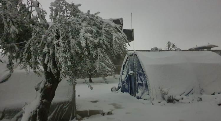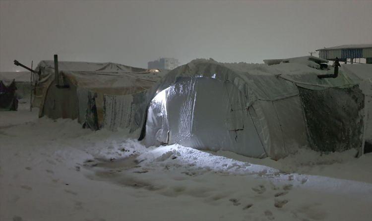 Suriye’de Halep’in kuzeyinde ve Türkiye’nin güneyinde yer alan Afrin bölgesinde yoğun kar yağışı, kamplarda yaşayan Suriyeli mültecileri olumsuz etkiledi.