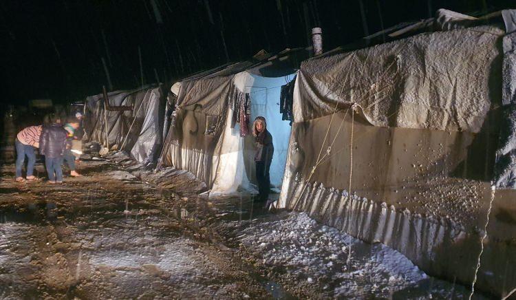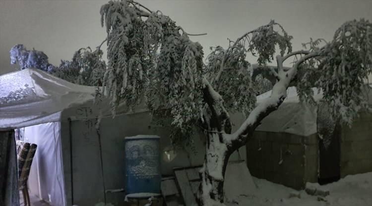 Kar yağışının etkili olduğu bölgede çok sayıda çadır hava şartları nedeniyle yıkıldı.