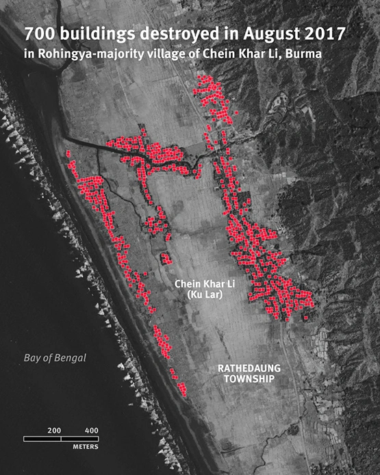Uluslararası insan hakları kuruluşları, yayınladıkları uydu görüntüleriyle yüzlerce köyün yok edildiğini kanıtladı.