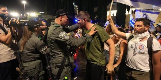 Kudüs’te 31 Mart akşamı yaklaşık 100 bin kişinin katıldığı hükümet karşıtı protestolarda, göstericiler otoyolda trafiği kesmiş, ateş yakmış, polisle karşı karşıya gelmişti.