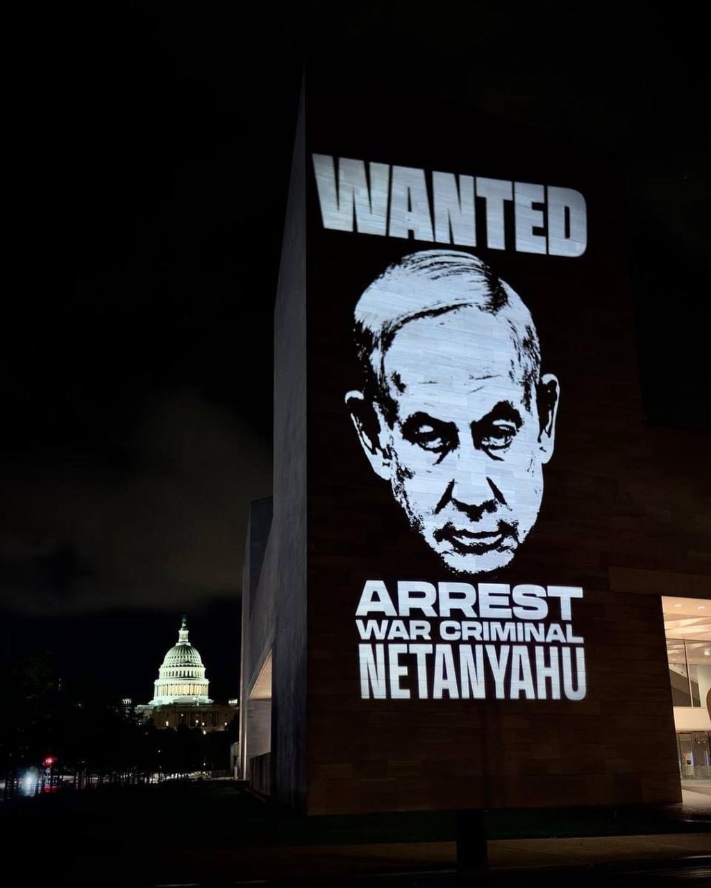 Kefiye ve Filistin bayraklı broş takan Tlaib, elinde tuttuğu ‘Soykırım suçlusu, Savaş suçlusu’ yazılı dövizi kaldırarak tek başına, tüm dünyanın konuştuğu anlamlı bir protesto gerçekleştirdi.