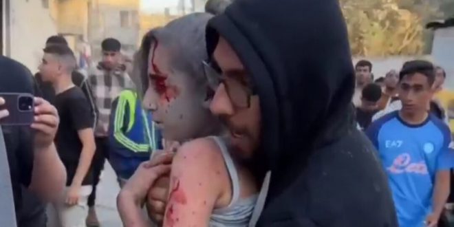 Ambulansların yaralılara yetişmesinin imkansızlaştığı şehirde zamanla yarışan Filistinliler, yaralı çocukları kucaklayarak hastaneye götürdüler.