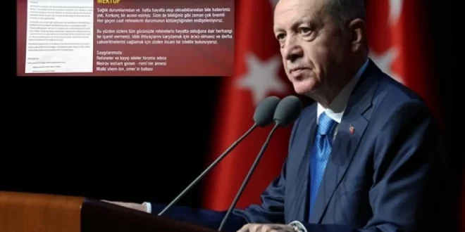 İsrail’in Gazze Şeridi’nde sivillere yönelik saldırıları devam ederken İsrailli rehinelerin ailelerinden Cumhurbaşkanı Recep Tayyip Erdoğan’a bir mektup geldi. Rehinelerin yakınları, Erdoğan’dan “İnsani bir müdahalede bulunmanızı istiyoruz” sözleriyle yardım istedi. Mektupta, “Bölgenin büyük güçlerinden birinin lideri ve Orta Doğu’da geniş etkisi olan biri olarak büyük destekte bulunabileceğiniz eşsiz bir konuma sahipsiniz. Tüm gücünüzle rehinelerin hayatta olup olmadığını öğrenmeniz, tıbbi ihtiyaçlarını karşılamak için aracı olmanız ve derhal salıverilmelerini sağlamak için sizden insani bir istekte bulunuyoruz.” ifadeleri yer aldı.
