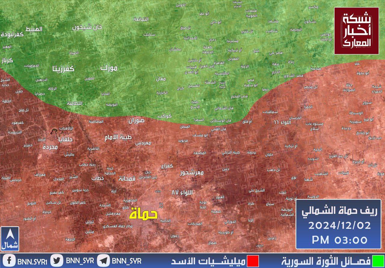 Saldırganlığı Caydırma” operasyonu kapsamında Hama’nın kuzeyindeki Şeyh Hadid beldesini ele geçirdi. Kuzey Hama kırsalına bağlı Tel Milah, Cebin, Muğir ve Celme köylerinin de muhalifler tarafından kontrol altına alındığı bildirildi.