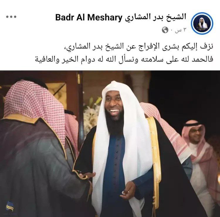 Tepkilerin ardından nihayet esareti sona erdirilen vaiz Bedir el Meşari’nin serbest bırakıldığı, resmi Facebook sayfasında şu mesajla duyuruldu: