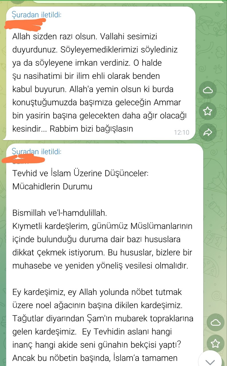 Ey kardeşimiz, ey Allah yolunda nöbet tutmak üzere noel ağacının başına dikilen kardeşimiz.. Tağutlar diyarından Şam’ın mübarek topraklarına gelen kardeşimiz. Ey Tevhidin aslanı, hangi inanç, hangi akide seni günahın bekçisi yaptı? Ancak bu nöbetin başında, İslam’a tamamen aykırı bir amelin gölgesinde, bir Noel ağacının başında beklemekle, hristiyanların necis akidelerinin aleni memurluğuna kim seni vazifeli kıldı? Sormak gerekir: “Kardeşim, kendi yurdunda, tağutun hüküm sürdüğü bir ülkede böylesi bir küfür amelinin başında bu şekilde hiç bekledin mi? Bu tür bir müzik dinleyip bu haramın başında saatlerce beklemek zorunda kaldın mı? Sen Şam toprağına, Yahudi ve Hristiyanların başına onların şirk amellerinin başına nöbetçi olmak için mi geldin? Ey kardeşim senin kendi ülkende böyle bir pisliğin yanında durman haramken sana kim şu an bunun helal olduğunu söyledi? Emri bil Maruf Nehyi anil münker her Müslüman’a haramken seni kim, nasıl aldattı?