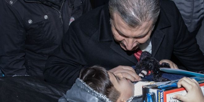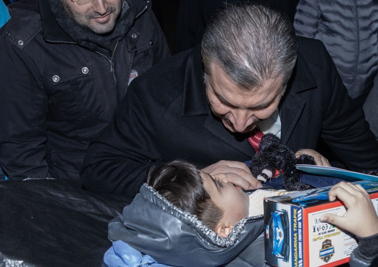 Sağlık görevlileri ile görüşen, aralarında 7 aylık yaralı “Hala Asraf” isimli kız bebeğin de bulunduğu kanser ve ortopedi hastalarıyla yakından ilgilenen ve sohbet eden Koca, hastalara ambulanslara alınma sürecinde de eşlik etti.