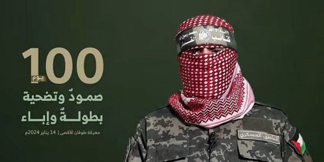 Kassam Tugayları sözcüsü Ebu Ubeyde 23 Kasım’dan sonra ilk kez görüntülü mesaj yayınladı. İşgalci İsrail’in saldırılarının 100. gününde dünyaya seslenen Ebu Ubeyde şunları söyledi: