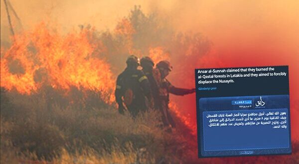 Suriye’nin Lazkiye kırsalında son günlerde çıkan orman yangınlarının sorumluluğunu “Ensar es-Sünne” adlı radikal bir yapı üstlendi. Grubun yayımladığı bildiride, yangınların hedefinin Nusayrî nüfusu bölgeden göçe zorlamak olduğu açıkça ifade edildi. Kamuoyuna yansıyan bu belge, yangınların rastgele değil, örgütlü bir saldırının sonucu olduğunu ortaya koydu.