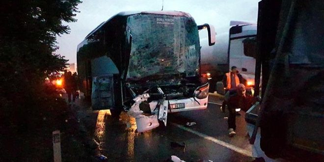 Anadolu Otoyolu’nun Sakarya kesiminde, İstanbul’dan Ordu’ya AK Parti seçmenlerini götüren otobüsün, dönüş yolunda tıra çarpması sonucu 22 kişi yaralandı.