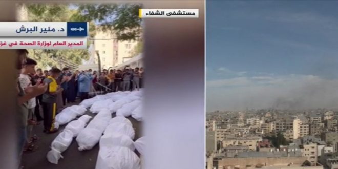 Ölü sayısı o kadar çok ki, Hastane müdürü Muhammed Ebu Salmiya, “muhtemelen bahçeye bir toplu mezar kazıp onları defnedecegiz” açıklaması yaptı.