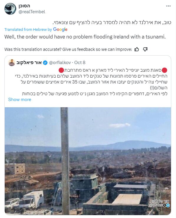 Sosyal medya platformları, İrlanda’nın güney Lübnan’dan barış güçlerini çekmeyi reddetmesinin ardından, İsrailli yerleşimciler tarafından İrlanda’yı hedef alan bir kışkırtma kampanyasına tanık oldu. İsrailli Yahudiler, İrlanda’nın tutumu ve İsrail’in saldırılarını açıkça kınayarak eylemlerini ‘terörizm’ olarak değerlendirmesi nedeniyle İrlanda’ya karşı bilenmiş durumda.