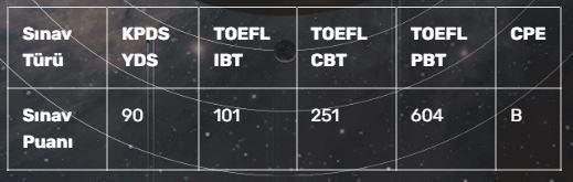 İngilizce yeterliliğini aşağıdaki sınavların birinden alınan puanla göstermek (Belirtilen sınavlardan alınan puanlarda herhangi bir geçerlilik süresi aranmaz),