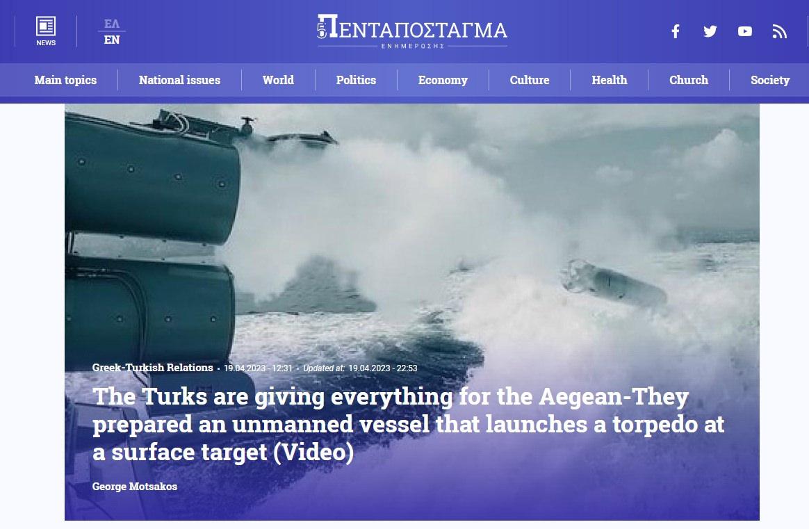 Radikal site pentapostagma, Türkiye’nin insansız deniz ve hava teknolojisine karşı Yunan hükümetini derhal harekete geçmesi için uyardığı görülüyor. Yunan basınının Türkiye’nin yerli ve milli başarılarına karşı yaşadığı bu telaşı şu sözlerle ifade ediliyor;