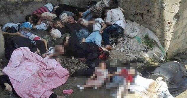 Beşar Esad’ın Alevi milisleri, aileleri önünde bebekleri katletti ve onları Baniyas’taki Al-Bayda köyündeki çöp kutularının önüne attı.