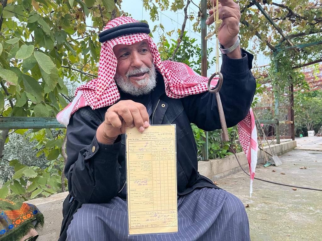 Babasından miras kalan tapunun İngiliz Manda yönetiminden alınan 6 Filistin lirası değerindeki mısır tarlasına ait, sakladığı anahtarın ise buğday ve arpa deposunun anahtarı olduğunu belirten Ebu Huveymil, şöyle devam etti: