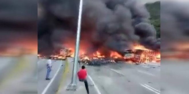 Risk Yönetimi ve Sivil Korumadan Sorumlu Bakan Yardımcısı Carlos Perez Ampueda, tiner yüklü kamyonun çarpmadan sonra patladığını ve 17 aracın küle döndüğünü bildirdi.