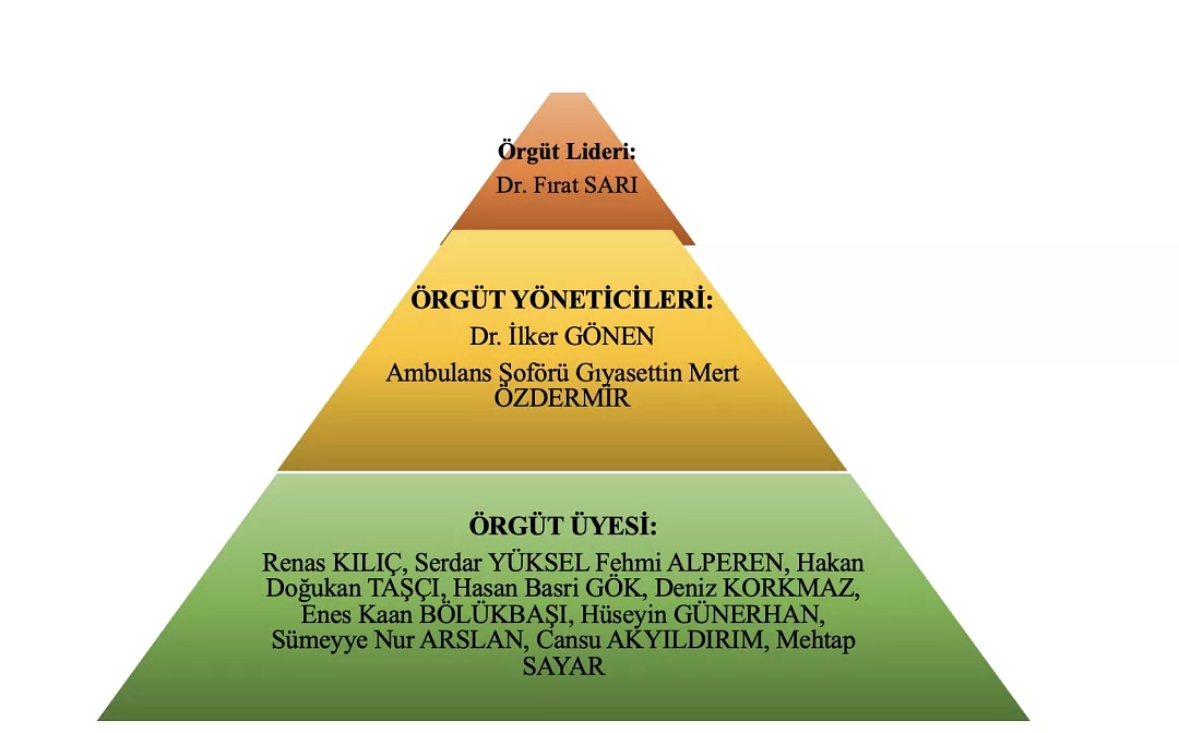 Soruşturmanın baş aktörlerinden biri olan Dr. Fırat Sarı, Medisense Sağlık Hizmetleri adlı şirketin sahibi ve örgütün lideri olarak öne çıkıyor. Tepedeki bir diğer isimse Dr İlker Gönen’in ise 112 Acil Çağrı Merkezi ile işbirliği yaptığı ve bebekleri ihtiyaçları olmadığı halde özel hastanelere sevkini sağlayarak haksız kazanç elde ettiği belirtildi.