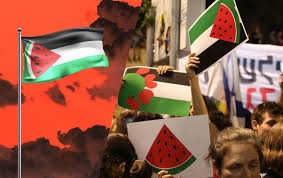 Karpuz, Filistin bayrağında bulunan kırmızı, yeşil ve siyah renklerle bağdaştırılmıştır. İç kısmındaki kırmızı direniş ve dayanıklılığı, çekirdeklerinden gelen siyah rengi zorluklara rağmen devam eden mücadeleyi ve kabuğundaki yeşil renk ise Filistin topraklarının bereketini yansıtmaktadır..