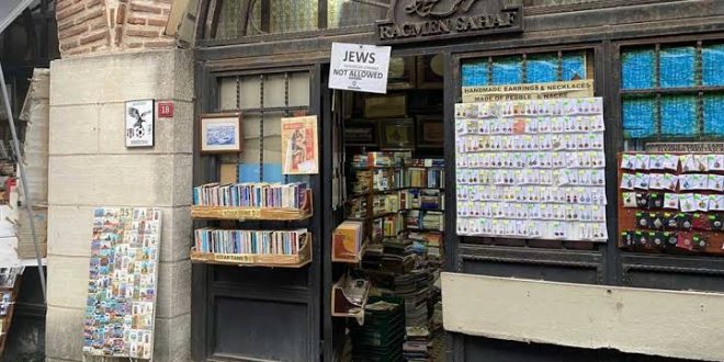 Geçtiğimiz aylarda İstanbul-Beyazıt’ta bir esnaf, İşgalci İsrail’in Gazze’de sürdürdüğü katliama tepki olarak dükkanının girişine ve tabelasının yanına “Yahudiler giremez” ifadelerinin olduğu bir yazı astı.