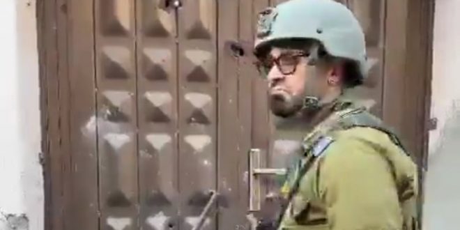 İşgalci teröristlerin Gazze’de bir kapı önünde çektikleri videoda, bir işgal askeri kapıyı çalıp bekliyor ve ardından kendisini kayda alan arkadaşıyla birbirlerine ‘niye kimse açmıyor’ diye soruyorlar.