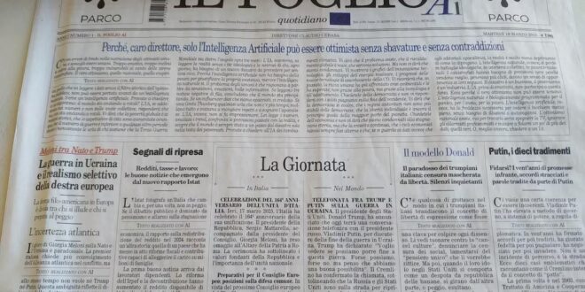 İtalyan muhafazakar-liberal gazete Il Fogli, tamamen yapay zeka tarafından oluşturulan günlük dört sayfalık basılı nüshasını yayımlamaya başladı.