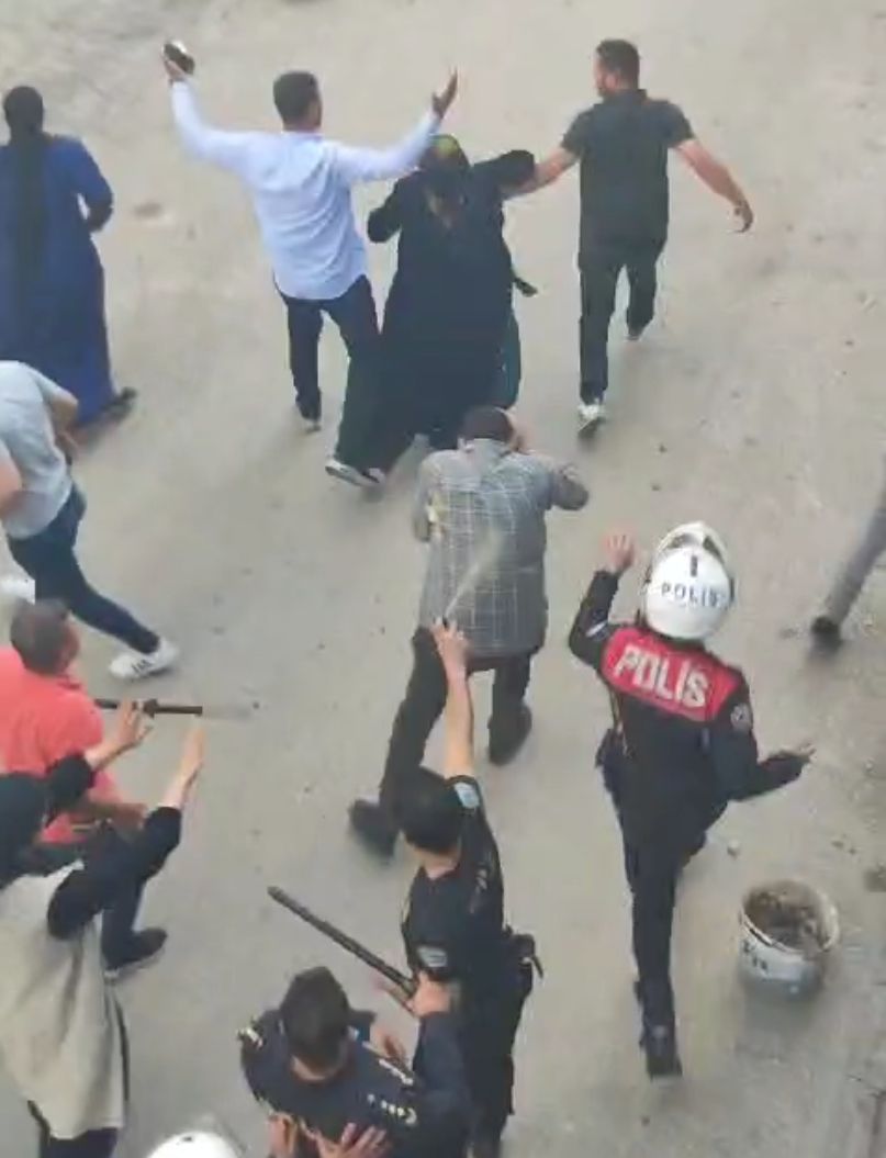 Adana’da iki muhtar adayı arasındaki kavgaya müdahale eden polis, orantısız güç kullanarak halka ve özellikle çarşaflı bir kadına şiddet uyguladı. Görüntülerde, yerde yatan bir kadına copla vurulması ve bir polisin çarşaflı bir kadının örtüsünü çekip yere düşürmesi dikkat çekti.