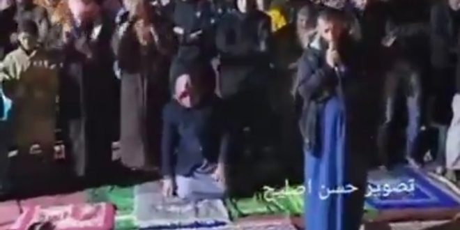 Yıkık minarenin önünde teravih için kıyamdalar! [Videolu]