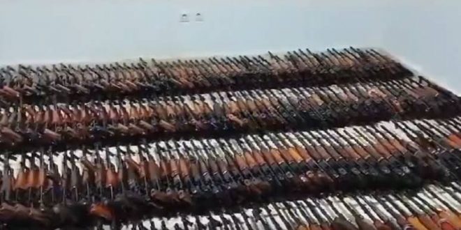 Kahraman Mehmetçik Irak’ın kuzeyindeki Pençe-Kilit Operasyonu bölgesinde terör örgütü PKK’nın inlerine girmeye devam ediyor. Etkisiz hâle getirilen iki teröristten teslim olanın verdiği bilgiler doğrultusunda Komandolarımız, Zap bölgesinde 467 adet kullanılmamış AK-47 piyade tüfeği ile birlikte çok sayıda mühimmat ve askerî teçhizat ele geçirdi. Bu sayı son dönemde tek seferde ele geçirilen en yüksek silah rakamı oldu. Ele geçirilen silah ve mühimmat şu şekilde: – 1 adet 7.62 mm PKMS makinalı tüfek, – 56 adet RPG-7 antipersonel mühimmatı, – 314 adet el bombası, – 2 adet PKMS makinalı tüfek yedek namlusu, – 146 adet AK-47 piyade tüfeği şarjörü, – 139 adet tahta dipçik, – Çeşitli yaşam malzemesi ele geçirildi.
