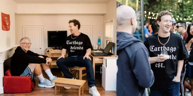 Zuckerberg, doğum günü kutlamalarında paylaştığı fotoğraflarda, ünlü Romalı siyasetçi Marcus Porcius Cato’nun Latince “Kartaca yok edilmeli” (Carthago delenda est) ifadesini taşıyan siyah bir tişört giydi. Cato’nun bu ifadeyi her konuşmasında savaşa teşvik etmek için kullandığı biliniyor.