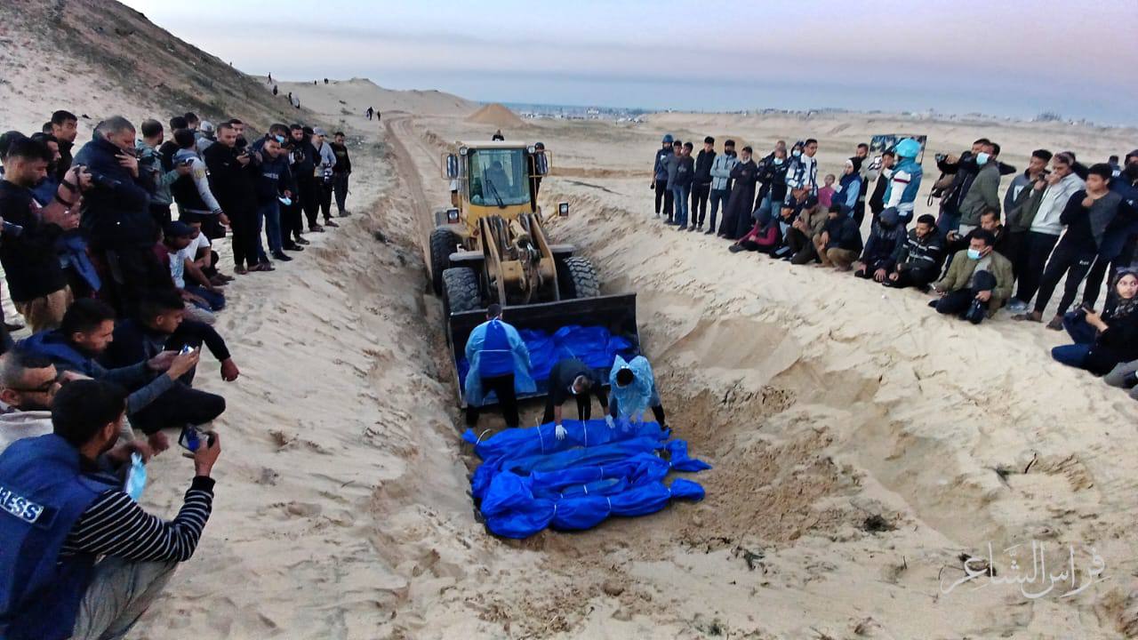 Dün gelen görüntülerde İsrail, kaçırdığı 80 kadar Filistinliyi öldürdükten sonra ceset torbalarına koyarak bir kamyon kasasında Gazze’ye geri getirmişti. Gazzeliler katledilen 80 masum Filistinli’yi toplu mezarlara defnetti.